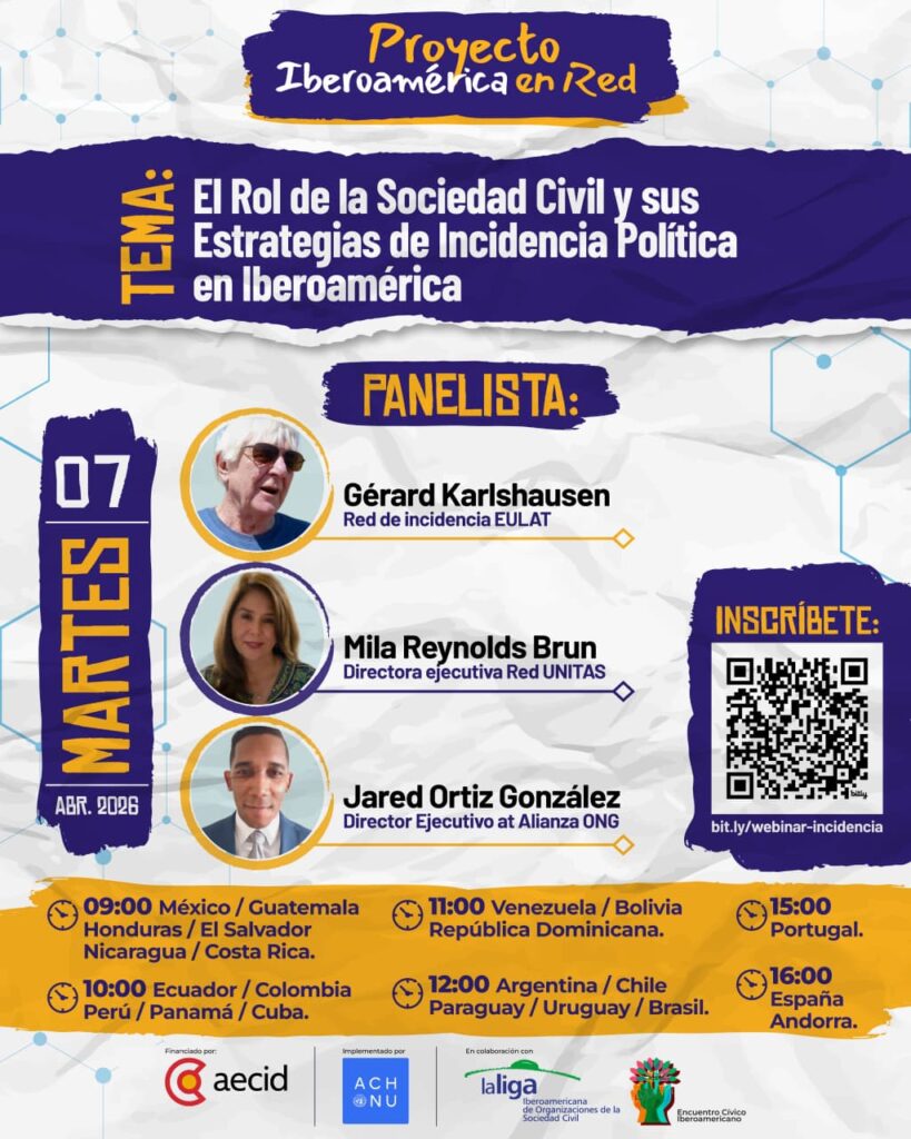Por Descentrados.cl Durante la mañana de hoy se llevó a cabo de manera virtual, el espacio: “El Rol de la Sociedad Civil y sus Estrategias de Incidencia Política en Iberoamérica”, coordinado y facilitado por el Proyecto Iberoamérica en Red, que agrupa países de la región, Europa y el Caribe. En esta ocasión Revista Digital …